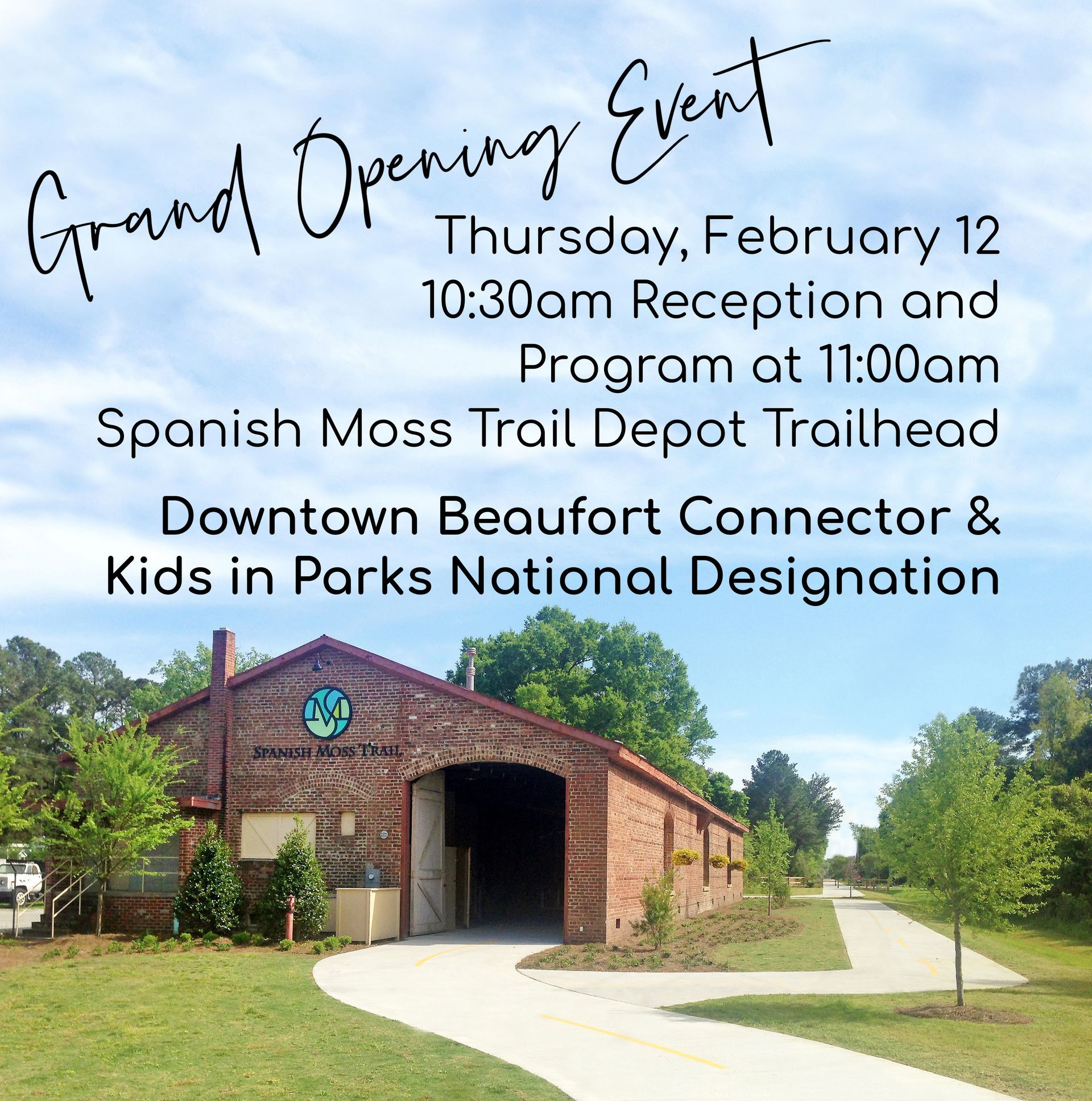 First, the opening of the new Downtown Beaufort Connector that links the Spanish Moss Trail's Depot Trailhead, down Depot Road, to Ribaut Road. This new wide path allows Trail users and downtown Beaufort patrons to easily go between the heart of the Trail and Beaufort's historic Bay Street's scenic waterfront, shopping, museums and restaurants.
