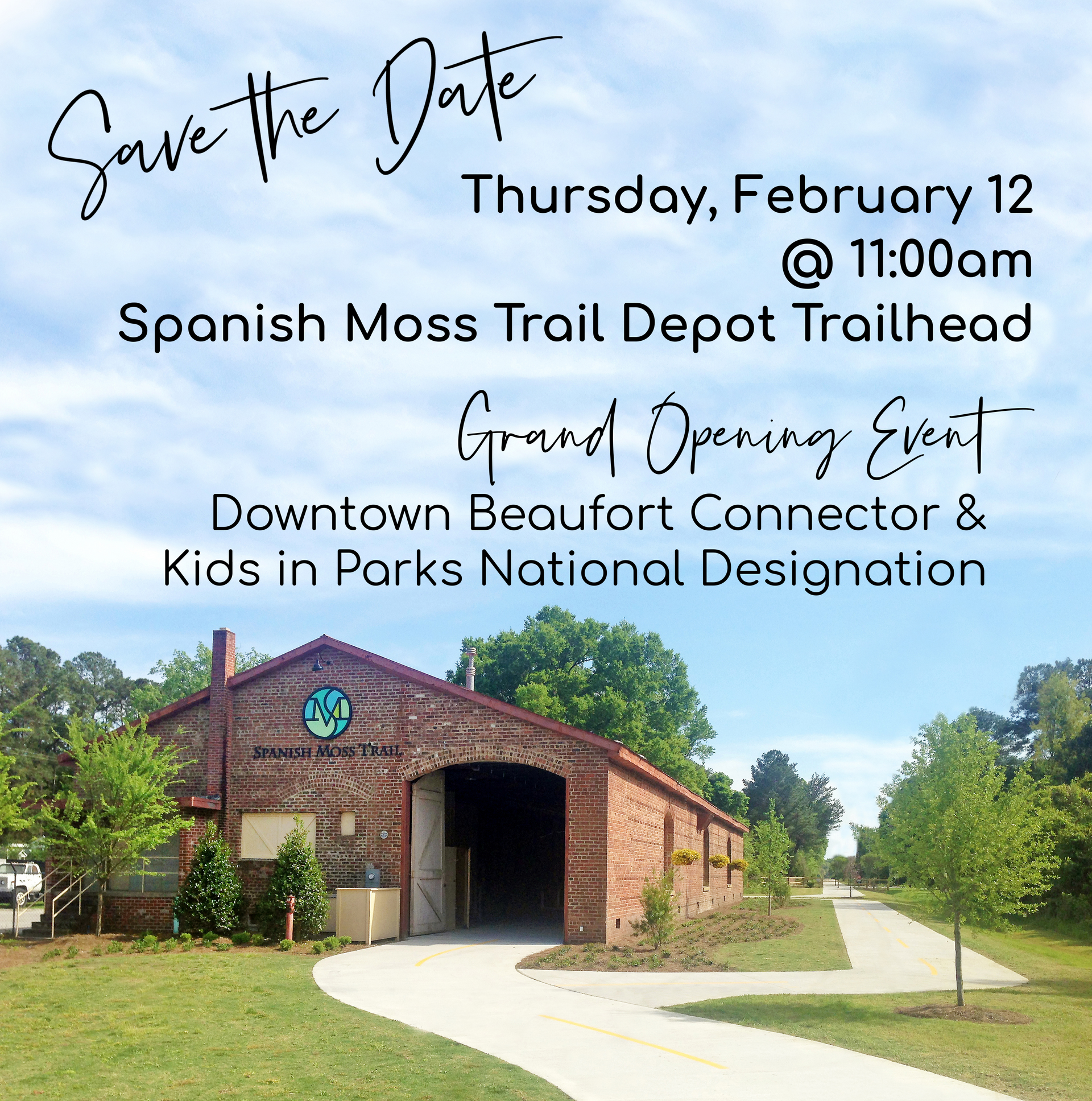 First, the opening of the new Downtown Beaufort Connector that will link the Spanish Moss Trail's Depot Trailhead, down Depot Road, to Ribaut Road. This new wide path will allow Trail users and downtown Beaufort patrons to easily go between the heart of the Trail and Beaufort's historic Bay Street's scenic waterfront, shopping, museums and restaurants.